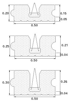 Painel de poliestireno expandido, Base de Unión Térmica "ISOLFORG", de 5 cm de espessura, com ranhuras em forma de cauda de andorinha, para eliminar pontes térmicas em vigas, no sistema de lajes unidireccionais Isolforg. |