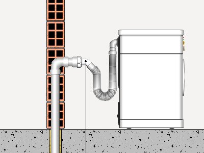 Ponto de escoamento para electrodoméstico, com ligação mista macho de PVC, de 40 mm de diâmetro, colada com adesivo.