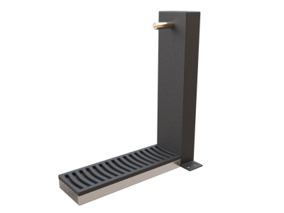 Fonte de 120 cm de altura, com corpo de ferro fundido com protecção antioxidante e tinta de cor preto, cano e pulsador de fundição de latão e grelha de ferro fundido pintada em preto, colocação com aro de aço galvanizado e pernos de ancoragem. | ||