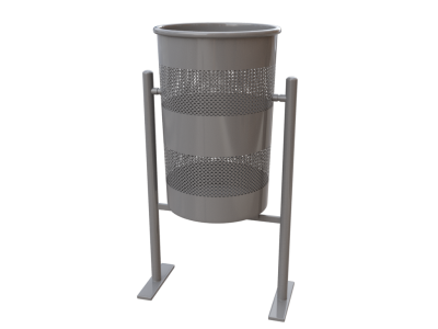 Papeleira, com recipiente de aço circular de 32 cm de diâmetro e 50 cm de altura, com acabamento esmaltado e suporte vertical de aço de 80 cm de altura, colocação com bucha química, anilha e parafuso.