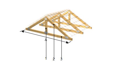 Asna ligeira de 6 m de vão, pendente 30%, formada por elementos de madeira serrada de pinho, de 70x70 mm de secção, com acabamento polido; ligações com ferragens de aço galvanizado tipo DX51D+Z275N e parafusos rosca-chapa de aço zincado, para samblagem de estruturas de madeira; separação entre asnas até 5 m.