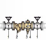 Válvula limitadora de pressão de latão, de 1/2" DN 15 mm de diâmetro, pressão máxima de entrada de 15 bar e pressão de saída regulável entre 1 e 4 bar, com duas válvulas de seccionamento adufa de latão fundido e filtro de retenção de resíduos de latão. Inclusive manómetro, elementos de montagem e acessórios necessários para o seu correcto funcionamento. | ||