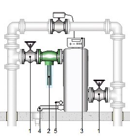 Descalcificador compacto com comando por tempo de três ciclos, caudal de 0,3 m³/h, com válvulas de seccionamento adufa. | ||