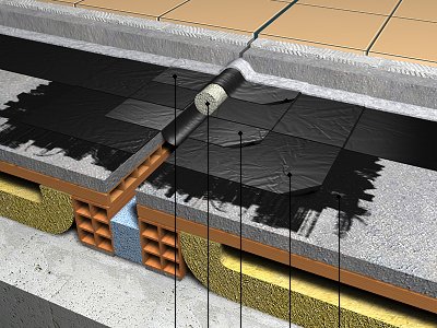 QBF010 Junta de dilatação em cobertura plana acessível, ventilada. Impermeabilização com lâminas asfálticas