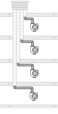 Exaustor convencional com 1 motor de aspiração, com tramo de ligação de tubo flexível de alumínio a conduta de extracção para evacuação de fumos. Inclusive elementos de fixação.